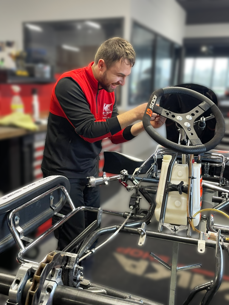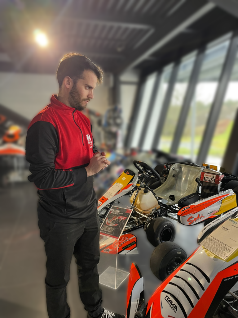 Gatien, en tant que mécanicien vous apportera une expertise technique. Il s’occupe du montage des karts, de la révision, de l’entretien des moteurs, des carburateurs et de la vente de pièces détachées.